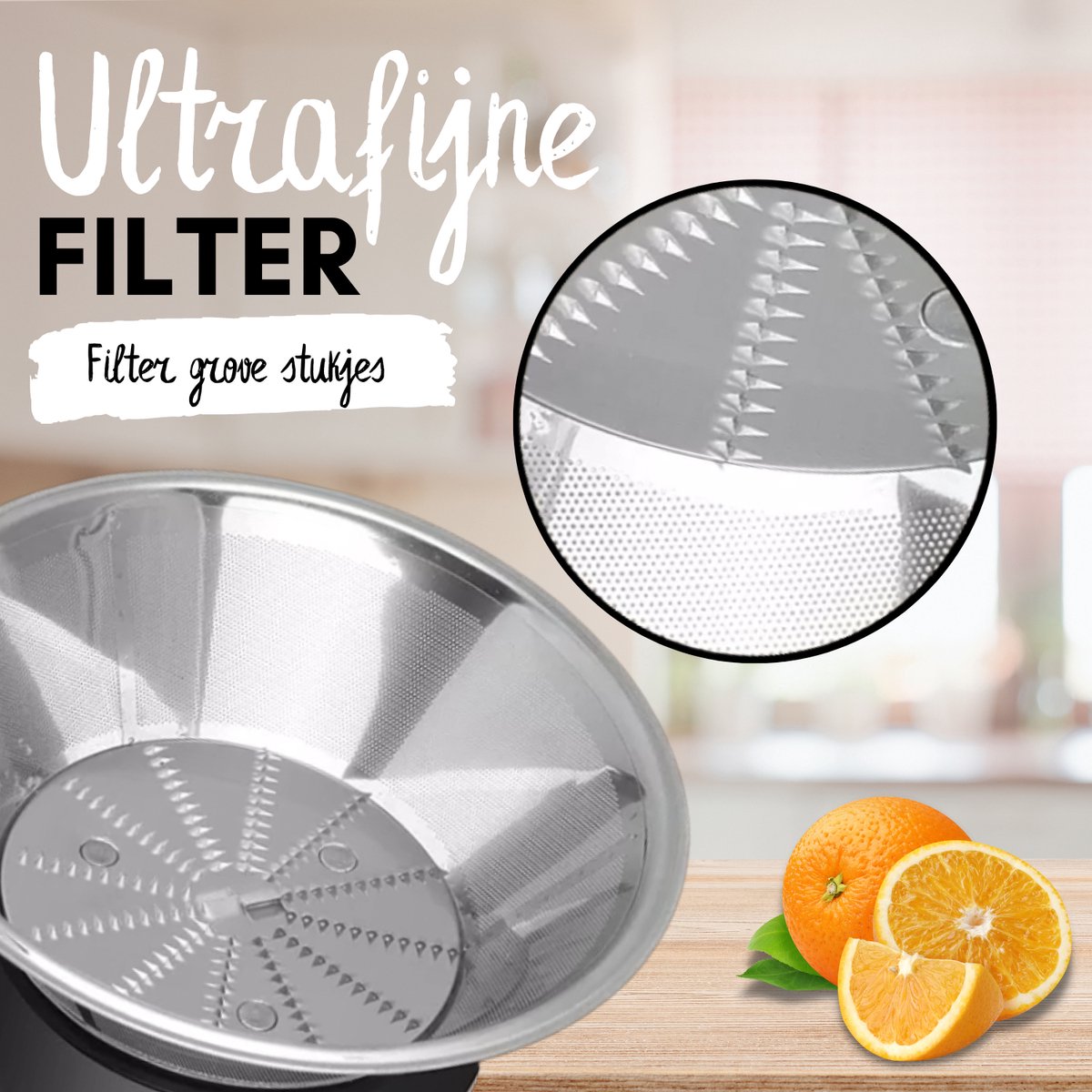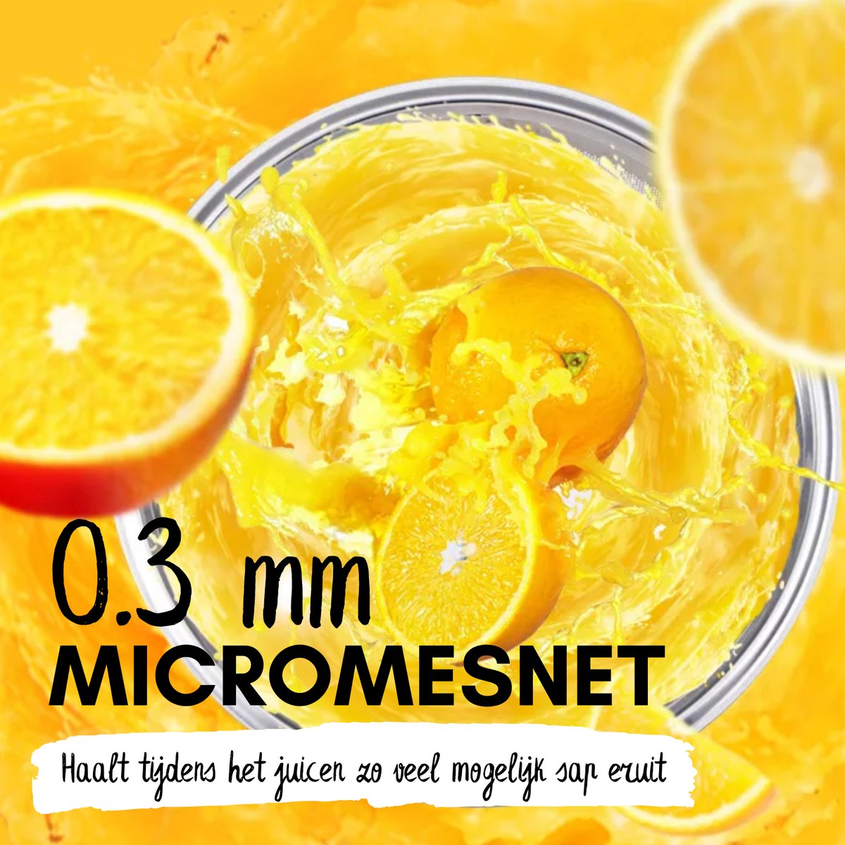 De COOK-IT Juicer zorgt ervoor dat fruit en groenten op de meest efficiënte manier geperst worden. Door de 156 waterdruppelvormige meshoeken wordt al het sap uit de pulp geperst. Het micromesnet van 0.3mm maakt van onnodige verspilling van sap hierdoor verleden tijd. Met de twee slijpmessen wordt er zelfs door de hardste kern van vruchten heen gesneden. Toch hoef je door de ultrafijne filter niet bang te zijn voor harde stukken in je sapje, deze grove stukken worden er namelijk uitgefilterd en komen in de pulpverzamelaar terecht. Door de ruime pulpverzamelaar van 1 liter inhoud, kan je zorgeloos een hele hoop sap persen voordat deze geleegd hoeft te worden.